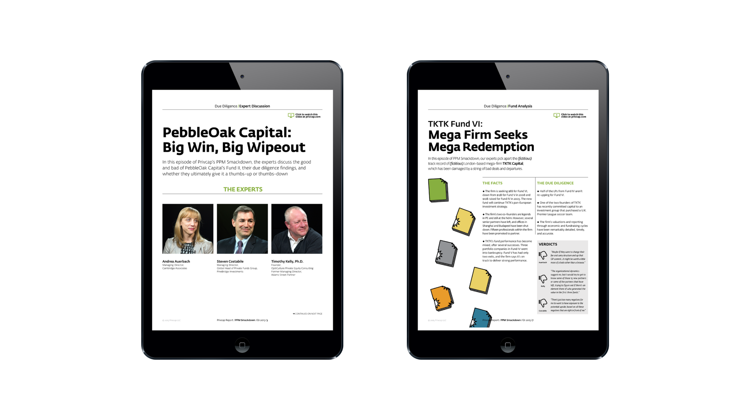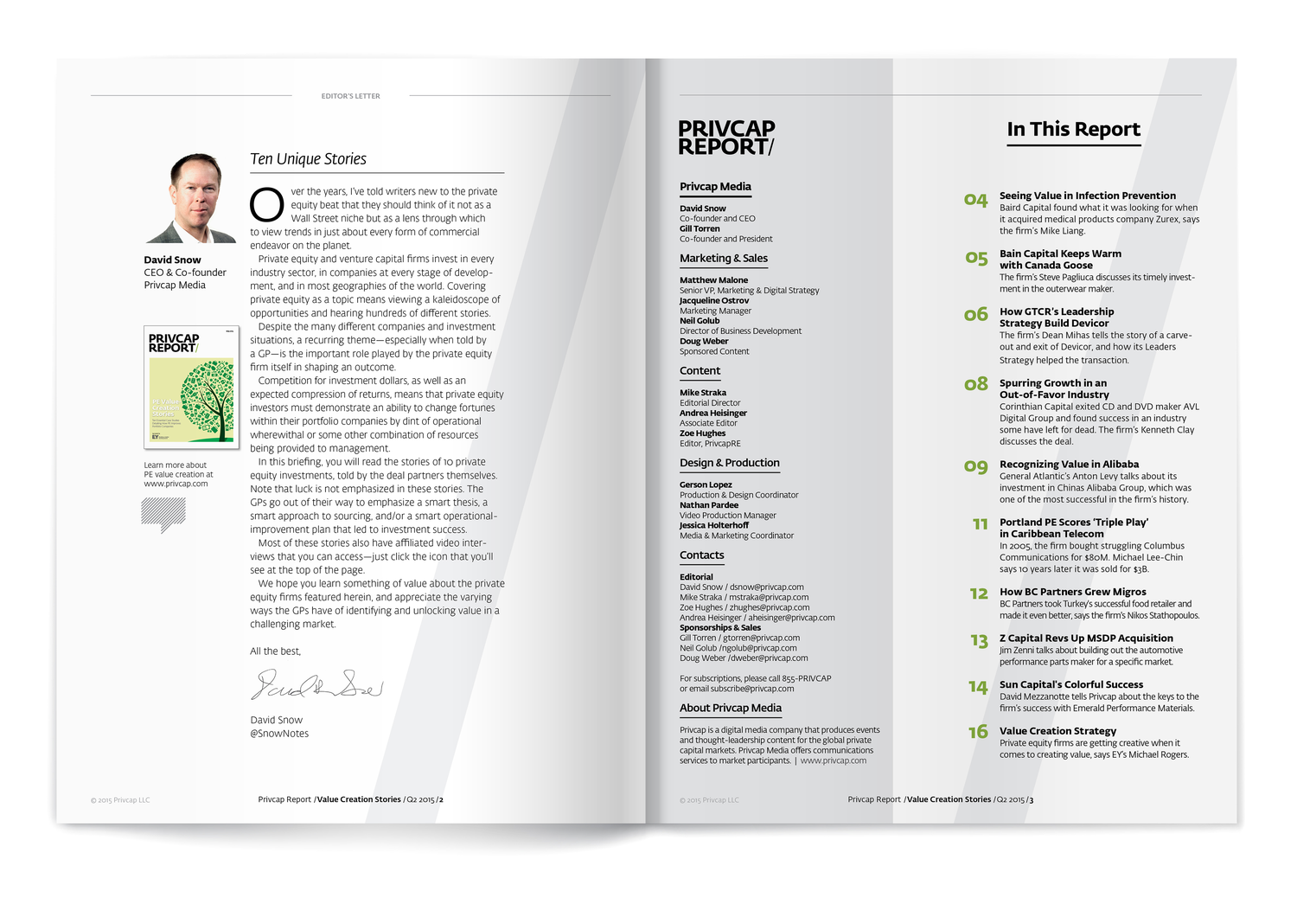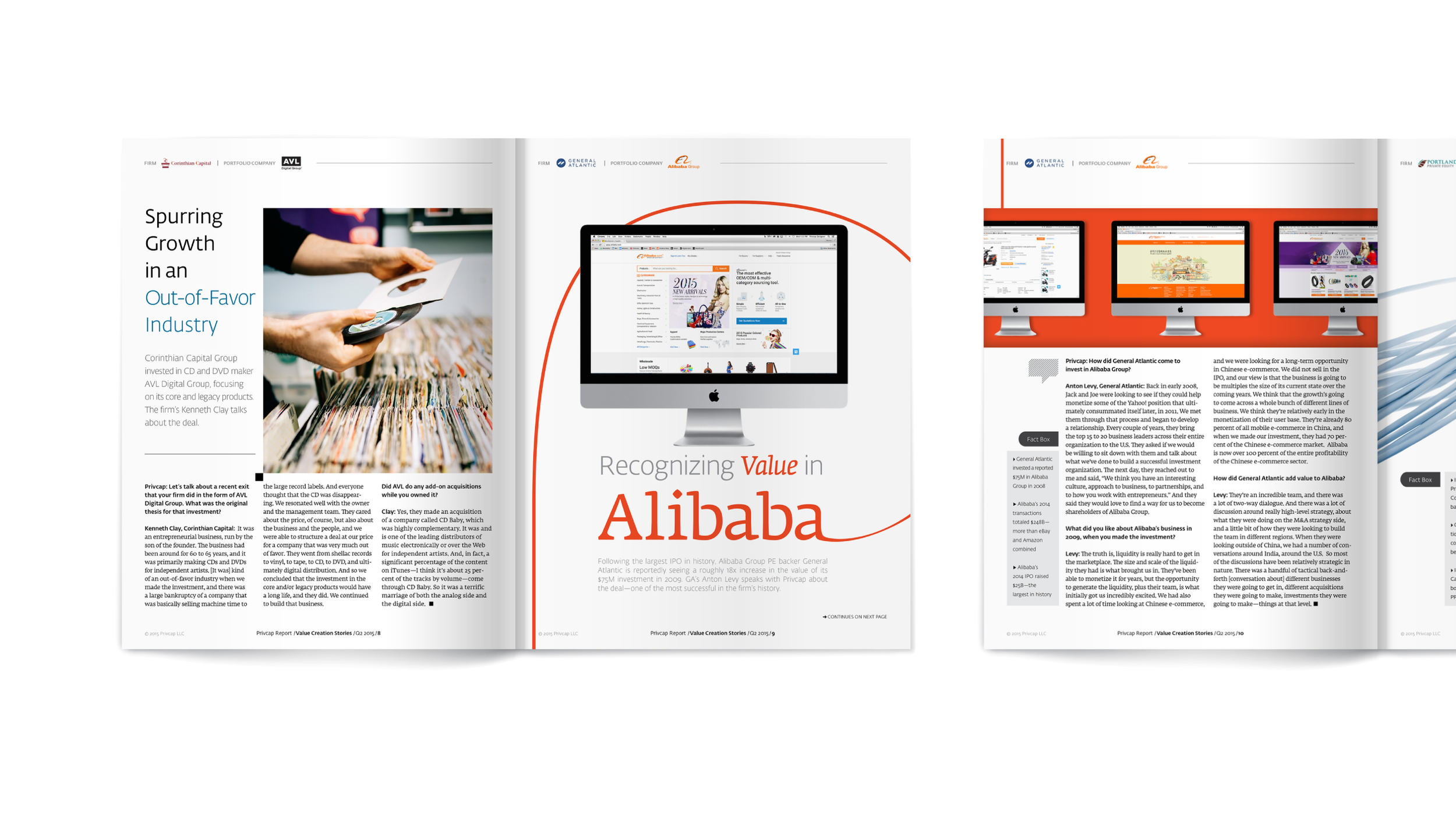Through close collaboration with the editorial team and careful production oversight, these publications translated complex industry insights into clear, well-designed materials that supported both Privcap’s brand and its clients’ communications. The previous examples highlight two of these projects, demonstrating the balance between editorial storytelling, structured design systems, and efficient production coordination.