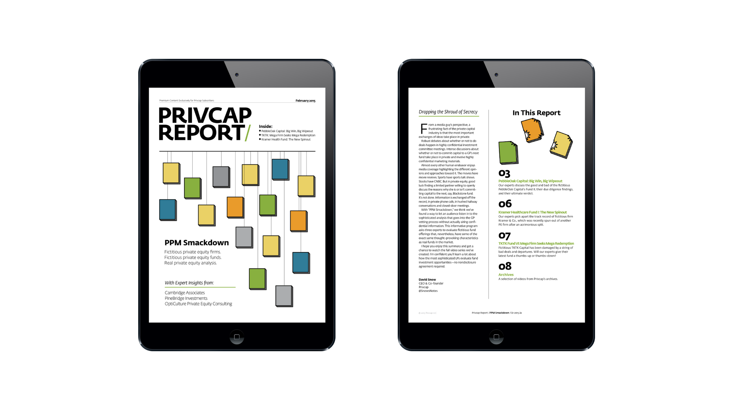 Typography, hierarchy, and layout structure were carefully developed to guide readers through the content while reinforcing Privcap’s editorial voice. Because these reports were delivered both digitally and in print, each design decision needed to perform effectively across formats, ensuring consistency regardless of how the publication was experienced.